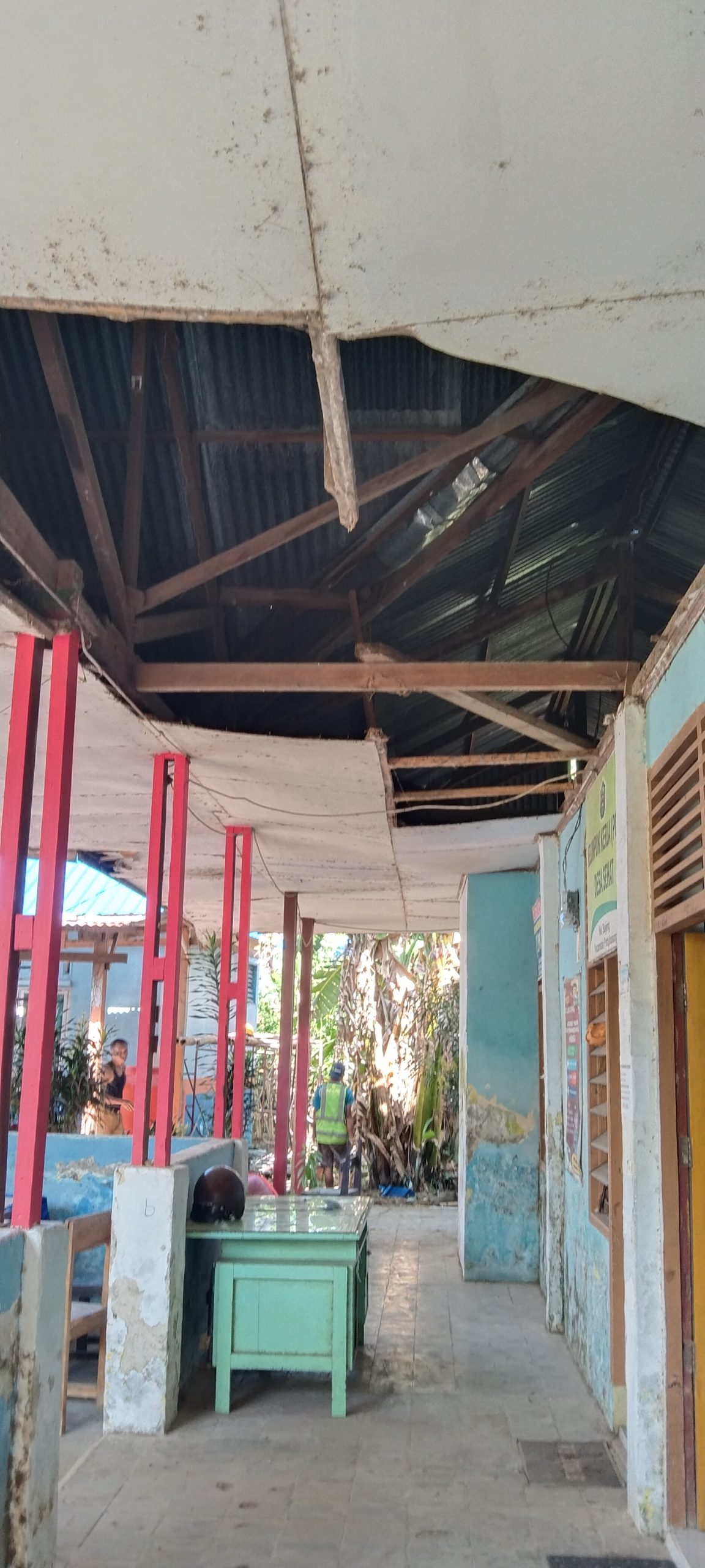 Berdasarkan pantauan dan keluhan warga, kondisi bangunan kantor Kelurahan Bajeng menunjukkan kerusakan yang cukup parah dan sistemik. Dinding-dindingnya terlihat kumuh dan terkelupas di banyak sisi, menandakan usia bangunan dan minimnya perawatan berkala. Lebih jauh ke dalam, masalah yang lebih serius terlihat pada bagian plafon yang sebagian besar sudah runtuh. Kerusakan ini bukan sekadar karena faktor usia, melainkan karena rangka atap yang lapuk dan rapuh akibat dimakan rayap.